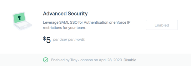 To turn off the Advanced Security add-on at any time, just head back to Your Plan > Add-ons and click Disable under the add-on.