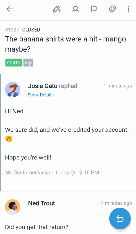 Swipe down in a folder view to load new conversations, or in a conversation to load new replies, notes, and other updates.