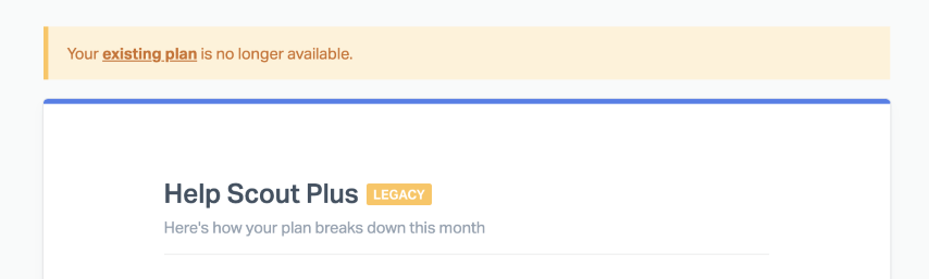 (legacy) badge next to your plan? This means that the plan you're on is no longer being offered to new accounts, and will not be available for you to go back to if you switch plans. For more on how this process works, see Legacy Plan Changes.