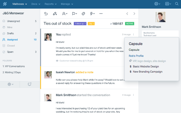 Capsule is a web-based CRM that helps you track the people and companies you do business with. It's a great tool for tracking conversations (like the ones in Help Scout and elsewhere) and opportunities in the pipeline. One great thing about using Capsule alongside Help Scout is being able to sync profile information.