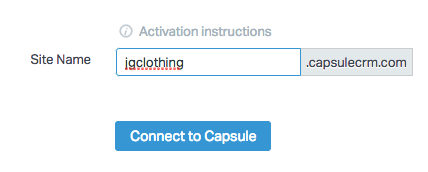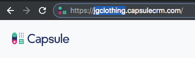 Log in to your Capsule account and take note of your Capsule site address. Your site address is the text screen before capsulecrm.com in your browser address bar. In the example below, our shop address is jgclothing.