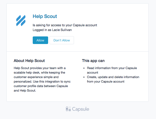 If prompted, log back in to your Capsule account and then click the blue Allow button.