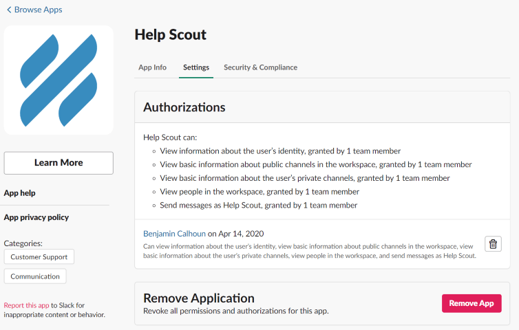 Note: If your organization signs a BAA with Help Scout and utilizes the HIPAA compliance features, Slack notifications will not include full conversation data that might expose PHI.