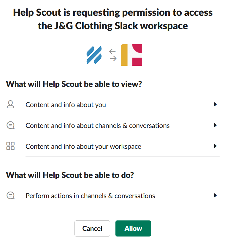 Note: If your organization signs a BAA with Help Scout and utilizes the HIPAA compliance features, Slack notifications will not include full conversation data that might expose PHI.