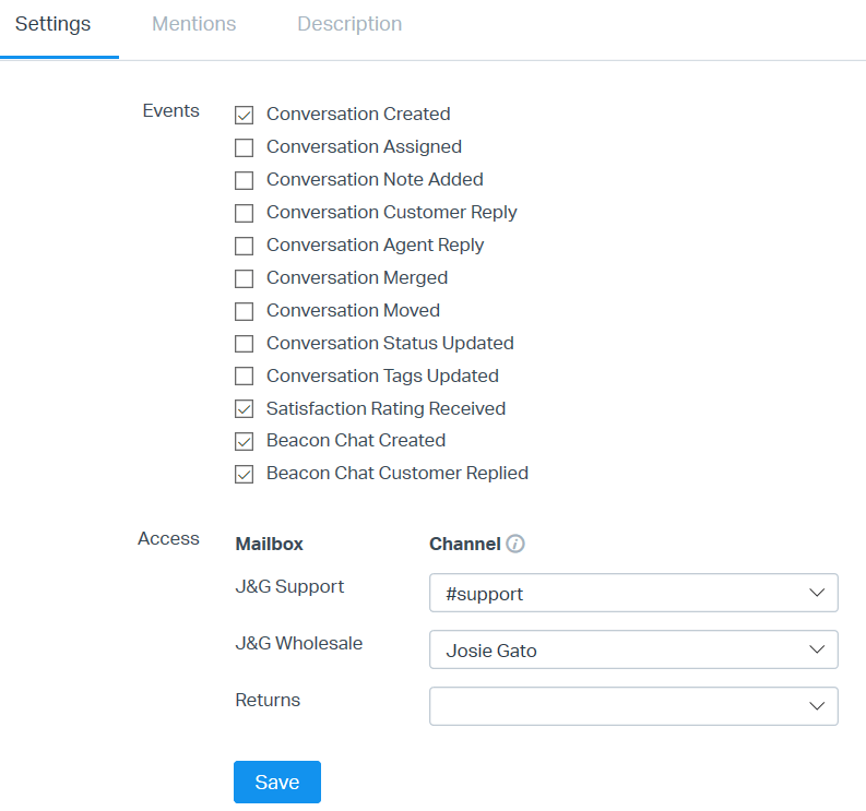 Note: Newly created Slack channels can take up to 2 hours to be displayed in the Channel menu(s) in Help Scout.