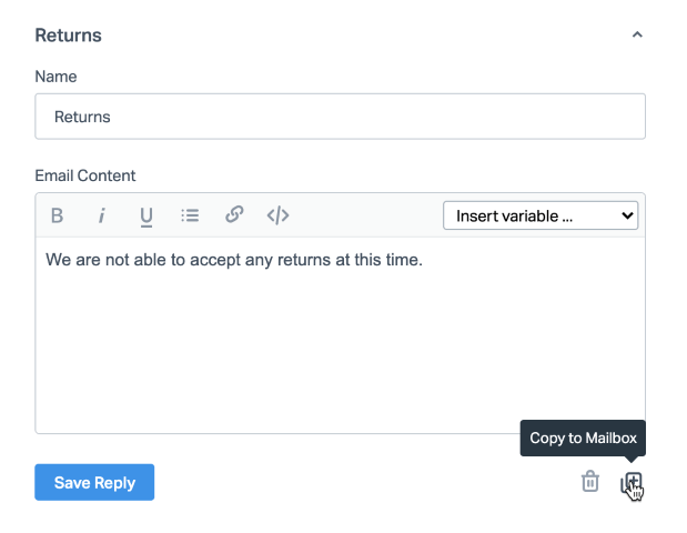 Do the same for any Saved Replies you want to use in the mailbox you're keeping.