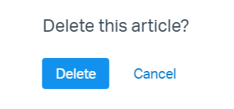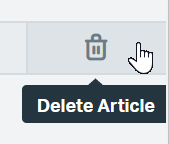 Open the article within the editor. Click Delete Article (the trashcan) from the buttons on the right, and a confirmation modal will appear. Click Delete to confirm you want to delete the article completely.