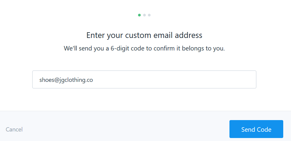 When you receive the code to your custom mailbox address, just pop it into the next screen then click Confirm.