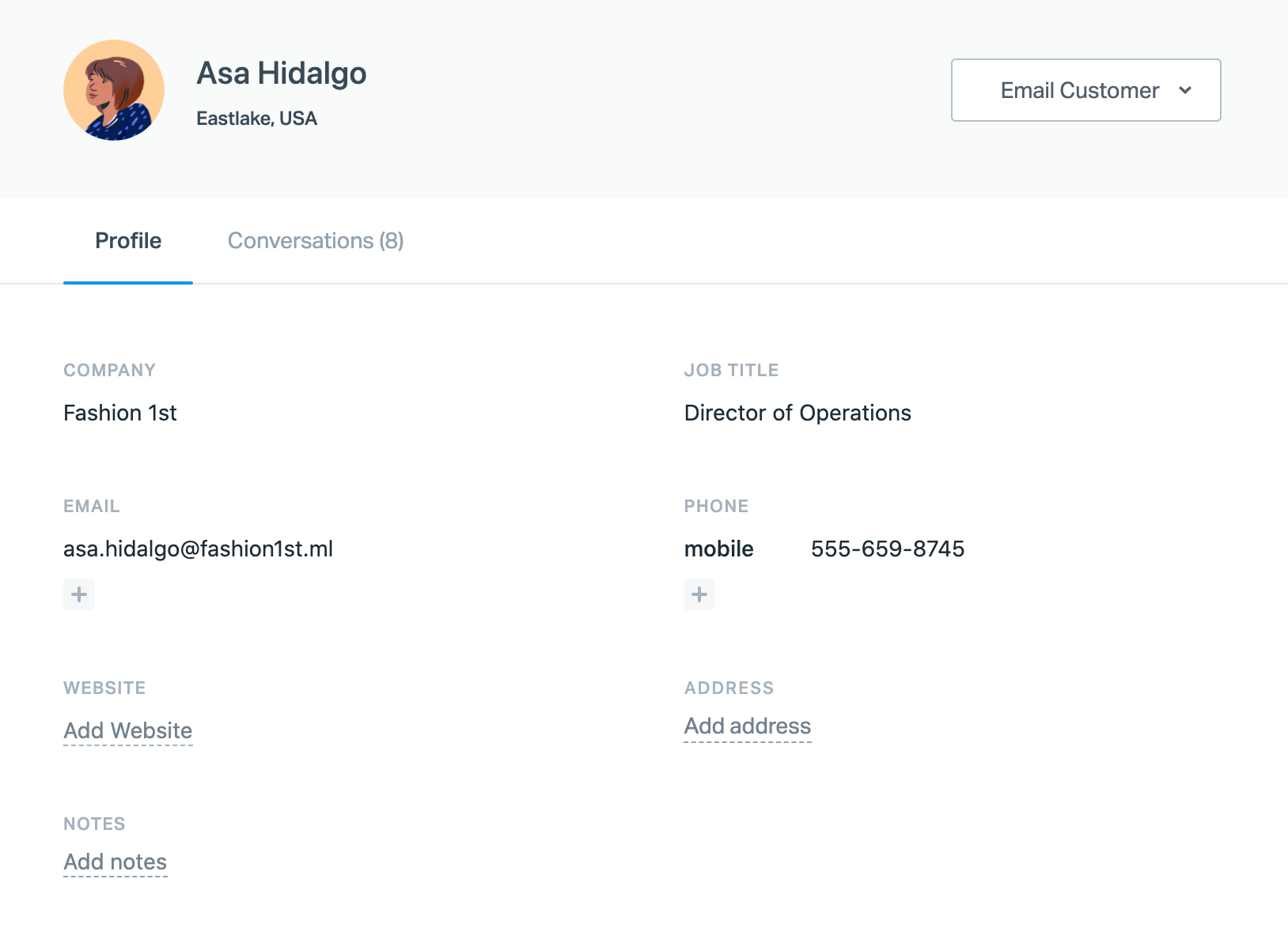 Profiles in Help Scout are built automatically when a customer emails your support address for the first time. We'll also create a profile when you compose a new conversation on behalf of the customer. This article talks about editing and updating profile information.