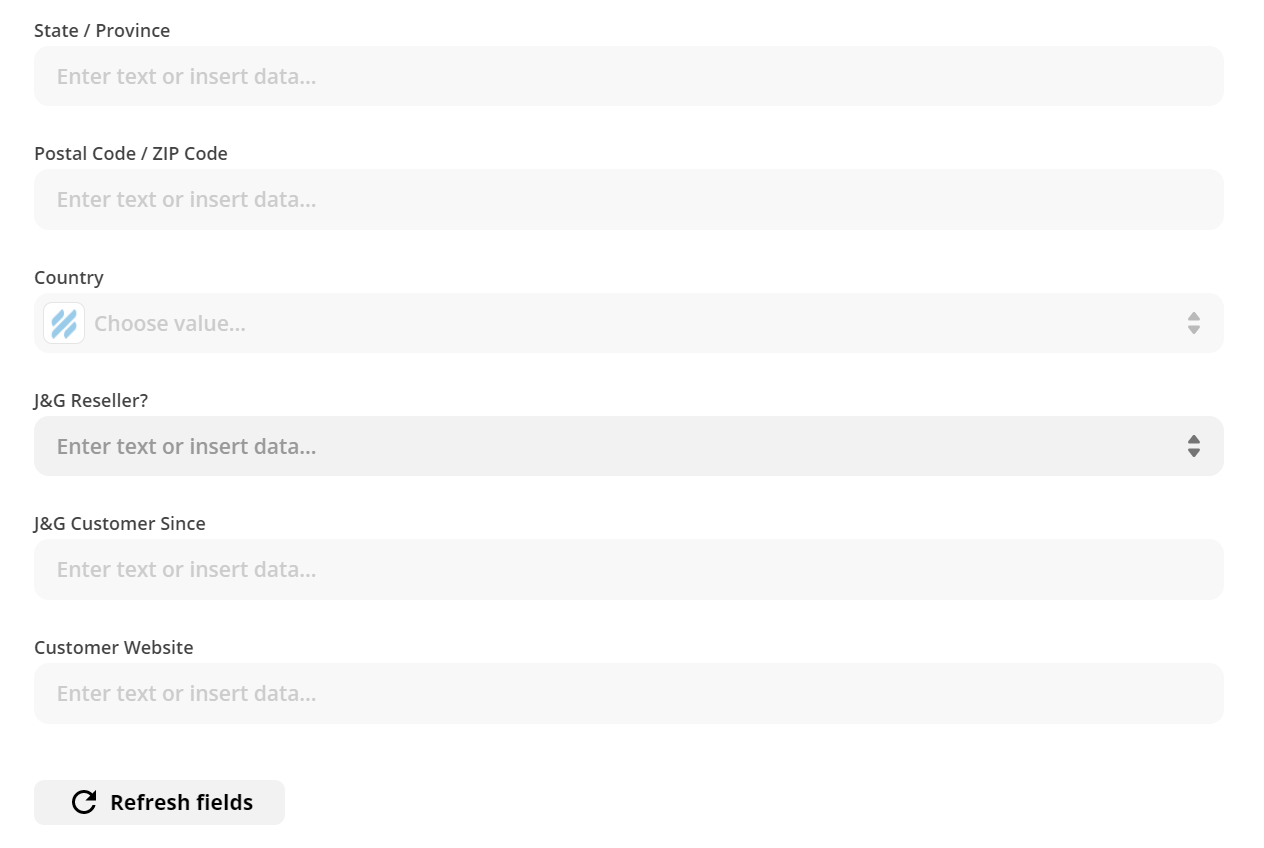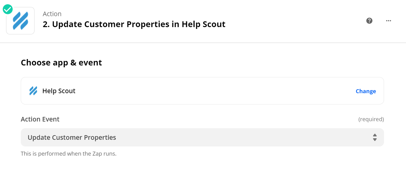 The new Update Customer Properties action at Zapier requires the Customer ID. If your trigger does not already include the Customer ID, use the Find Customer action as a step before this one to pull the ID, then choose the Update Customer Properties action. The Customer Properties you've defined will show as options to fill.