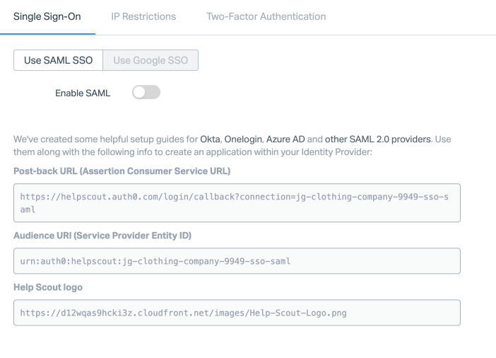 Note: Service Provider (Help Scout) provisioning is not supported. Accounts should be created first in the IdP or Help Scout, and then authenticated via the IdP prior to logging in to Help Scout.