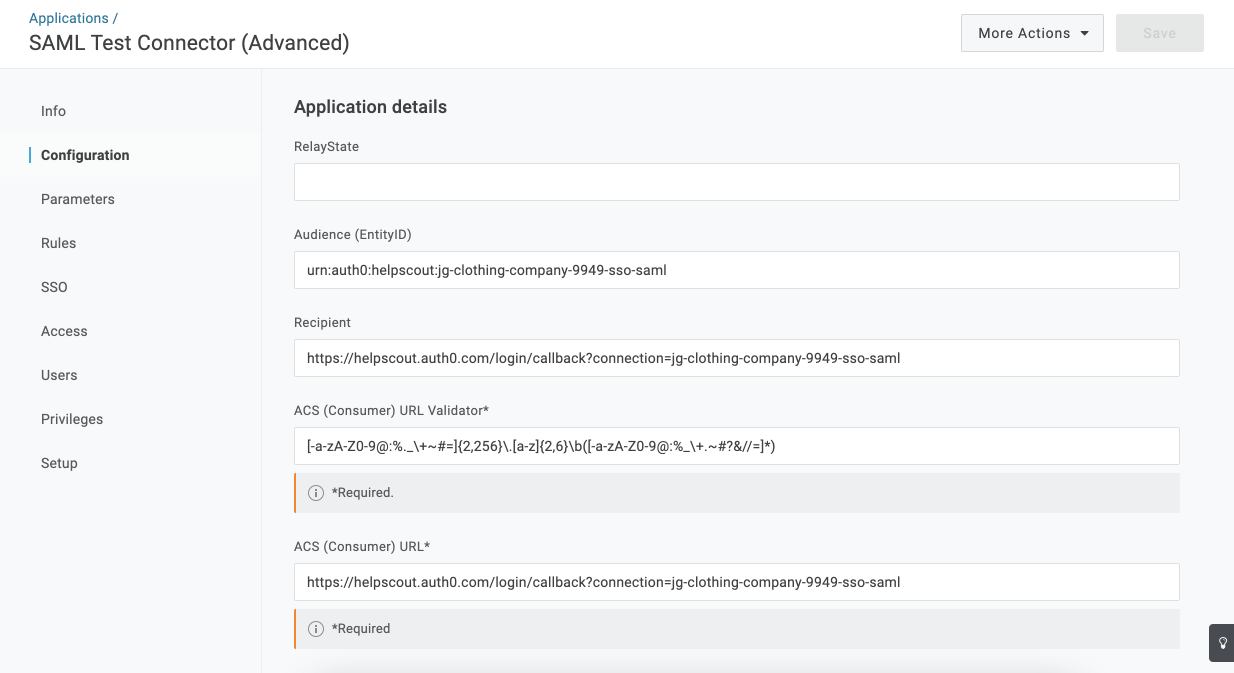 ConfigurationAudience URIAudience (Entity ID)Post-back URLACS (Consumer) URLRecipientACS (Consumer) URL Validator