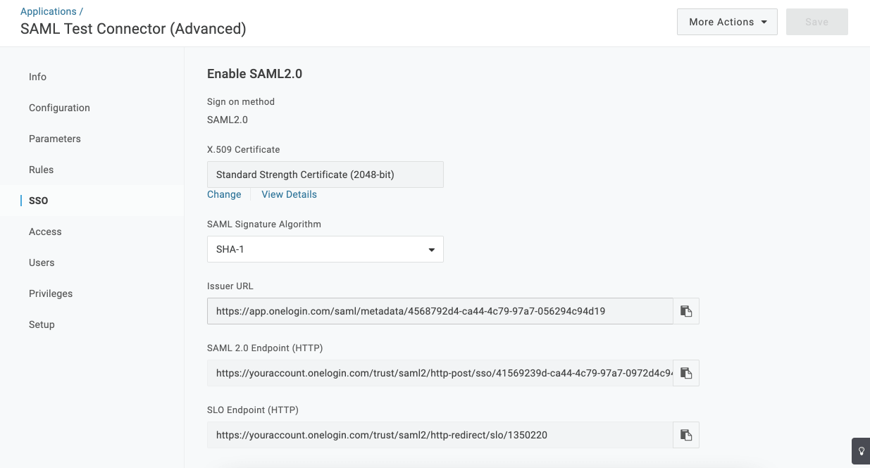 SSOSAML 2.0 Endpoint (HTTP)View detailsDownload onelogin.pemSAML 2.0 Endpoint (HTTP)