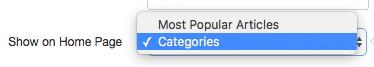 You can change the setting for the home page by heading to Manage → Docs → Site Settings, and scrolling down to the Site Information section. Under the Show on Home Page drop-down menu, you can select one of the options: Most Popular Articles or Categories.