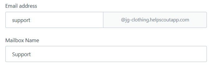 When you create your first mailbox, you'll create an email address at your company's Help Scout subdomain, e.g. support@jg-clothing.helpscoutapp.com. If you want to use the helpscoutapp.com address, you're all set — any email sent to that address will appear in your new mailbox!