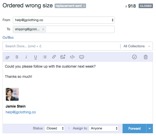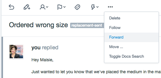 Forwarding a conversation is a handy way to converse with someone who does not have a Help Scout account.