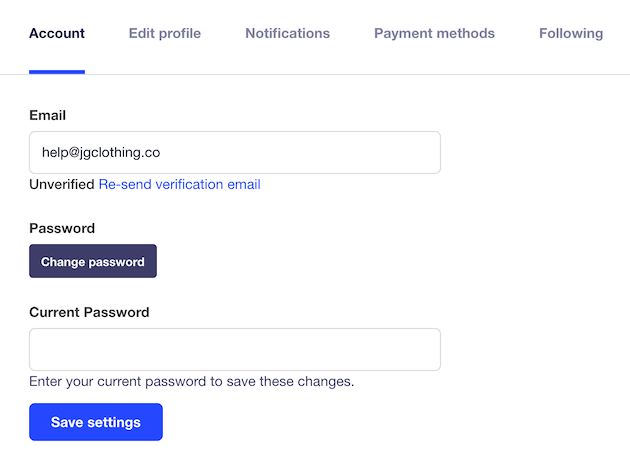 Head over to Kickstarter. From the account Settings page, change your main Kickstarter email address to your main support address. This should be the same address as the mailbox address used in Help Scout.