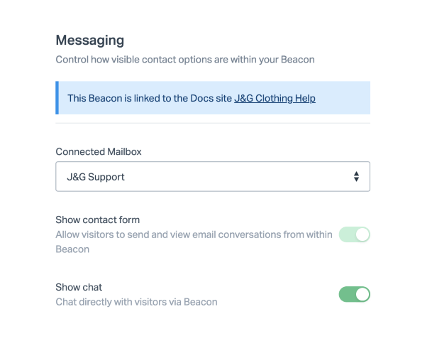 Choose which Help Scout mailbox the emails and chats will go to from this Beacon.