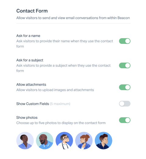Ask visitors to provide their name when they use the Beacon contact form. When you enable this field, it is a required field on your contact form.