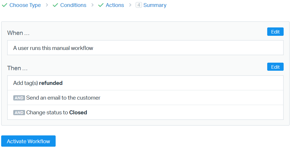 Confirm the details of your workflow and select Activate Workflow to finish.