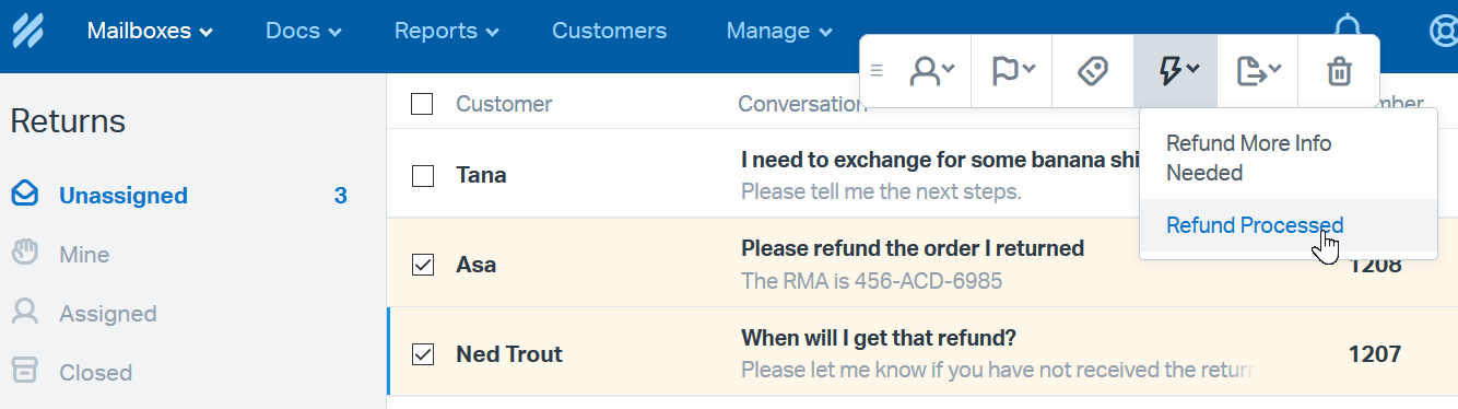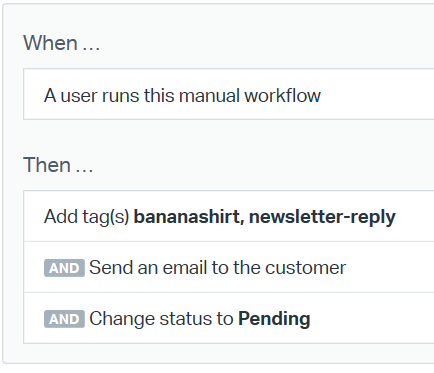 Manual workflows allow you to execute multiple actions on a conversation in just a couple of clicks. This can save your team time as well as ensure consistency across the team. If you're just getting started with workflows, check out Get Started with Workflows for a general primer. This article will teach you more about manual workflows specifically.
