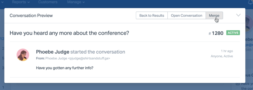 It's quick and easy to merge those two conversations together to consolidate into one, keeping things neat and tidy.