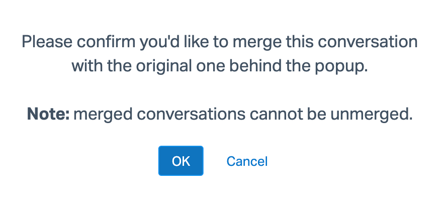 Sometimes you'll have multiple conversations that you want to merge together to handle at once — perhaps your customer emailed you several times about the same thing before you had a chance to respond, or they accidentally sent the same email again.