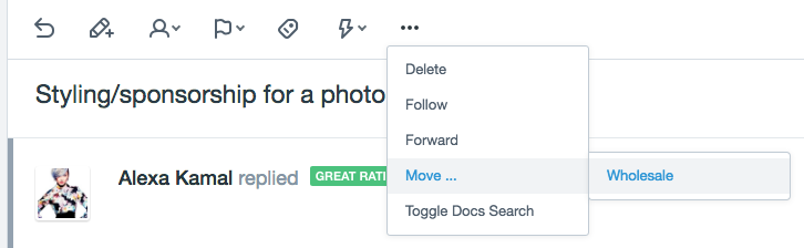 Moving conversations from one mailbox to another is helpful if a customer accidentally emailed the wrong mailbox address, or if you're just passing the conversation over to a team member who works in a different mailbox. You can move conversations in bulk, or one at a time from within the conversation.