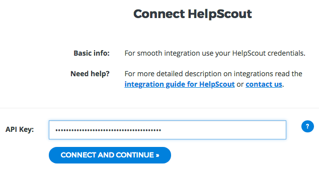 Click on the Help Scout logo from the list of integrations, and paste your API key in to the box, then click the Connect and Continue button. On the next page, select any Users from your Help Scout account that you'd like to import into Nicereply.