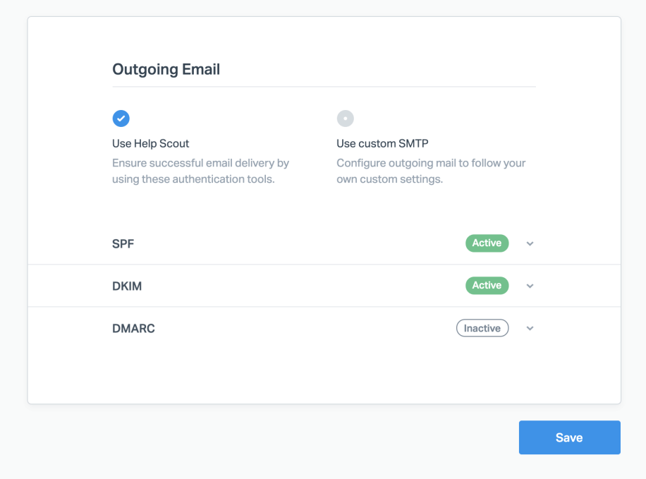 After configuring your Help Scout mailbox to use a custom email address, Help Scout Account Owners and Administrators can also adjust the Outgoing Email settings for that mailbox. The option you choose for your outgoing email will depend on your organization's needs and requirements. This article will explain what those options are so that your team can decide which is best for you!