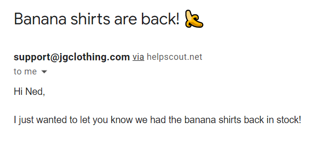 All mailboxes default to this setting, and by default Help Scout will send emails on your behalf when you reply to or start a new conversation. This means that the emails will show to your recipients as via helpscout.net or on behalf of your domain. This prevents spam filters from seeing the email as "spoofing" your domain, or falsely pretending to be real email from you. The recipients' email client will determine how this appears in their email. For example, if your recipient uses Gmail, it will look like this in their inbox: