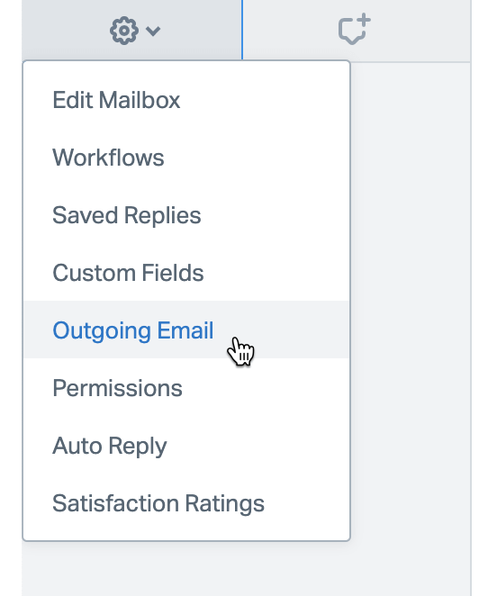 From within the mailbox, click the gear icon and choose Outgoing Email.