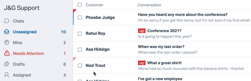 Note: The Needs Attention folder will also show any conversations where a reply has bounced — see Troubleshooting Conversations in Needs Attention and Bounces for more if your conversation status shows as Bounced.
