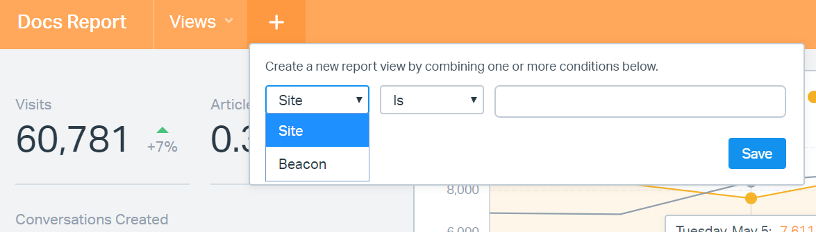 The Docs report reflects all views and searches performed on your Docs site. Visits for Beacon are calculated when a visitor performs a search in the Answers section or opens an article. If your team is using the Docs search bar in the reply editor, those searches are not included.