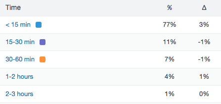 For one, you could drive handle time down with more saved replies, or even an internal knowledge base. Both of these little tools keep the User on the same page, focused on the reply, and not bouncing between tabs to find additional information. Based on our example below, our average handle time for the filtered period was 3 minutes and 48 seconds. In other words, it took us close to 4 minutes to open the editor, whip up a reply, and send it off.