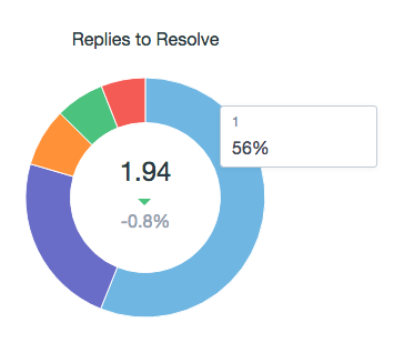 Lengthy exchanges could mean that not enough information is being given with each reply, or perhaps you're receiving a handful of complex questions which require multiple messages. On the flip side, a low number of replies could be a sign that your team is providing really thorough answers on the first try. In our example below, 56% of our conversations needed only one reply to resolve.