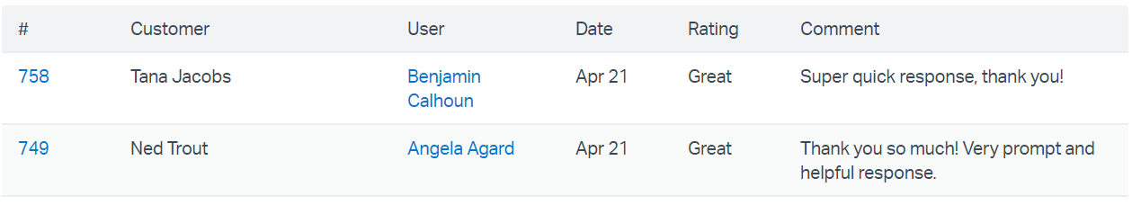 Ratings alone don't answer that question entirely, but they sure do help. At a glance, the Happiness report shows you how many ratings you've received within your filtered time period, and what percentage of those ratings are Great, Okay, or Not Good. You can also hover over each percentage to see an exact count.