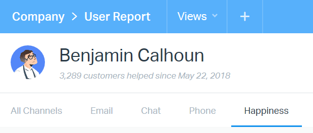 Built around customer satisfaction ratings, the Happiness report is a simple but powerful tool used to measure customer experience. Ratings are calculated both for the help desk as a whole, divided between email and chat, and the individual team member. Evaluating satisfaction ratings and comments is a great way to identify trends in team performance.