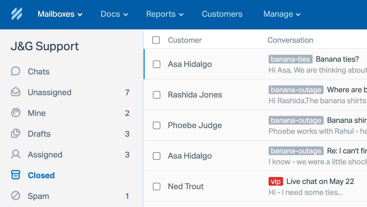 Note: Recently Deleted is only available if you have permission to delete conversations. See User Roles and Settings for more on permission settings available to Help Scout administrators.