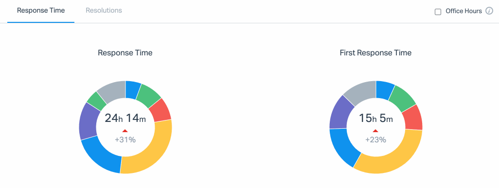 Check the Office Hours checkbox at the top right corner of the Response Time metrics, right below the main productivity chart. The Response Time metrics update instantly.