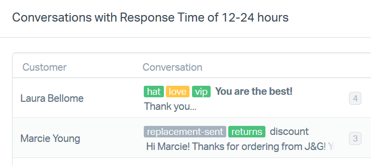 If you saw that 5% of email conversations took 2+ days to reply, you'd probably want to take a look and find out what happened. Thankfully, all of that data is just a click or two away. You can even click on single conversations and read the most recent interactions without ever leaving the page!