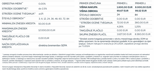 Trgovina in Leanpay lahko od časa do časa ponudita promocijske, posebne ali drugačne pogoje od tu navedenih.